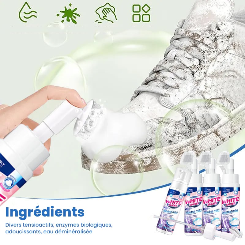 Nettoyant moussant sans rinçage – éclaircit et blanchit instantanément les chaussures