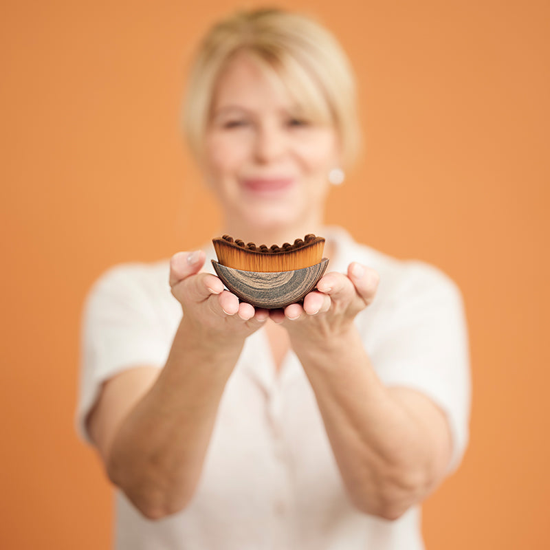 PRISE EN MAIN CONFORTABLE POUR UNE UTILISATION SUR TOUT LE CORPS : Conçue avec une sangle en coton et une base ergonomique en bois, cette brosse sèche pour le corps tient bien dans la main. Elle atteint facilement les jambes, les bras et le dos sans glisser, ce qui vous permet de vous brosser les cheveux confortablement et régulièrement de la tête aux pieds.