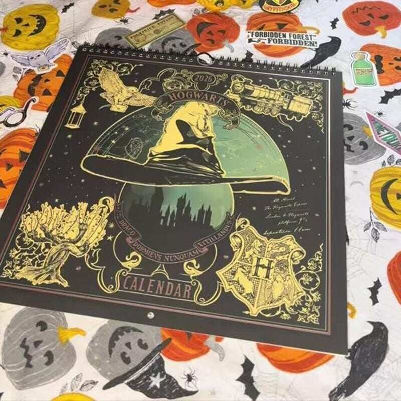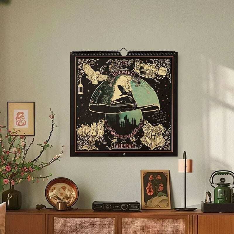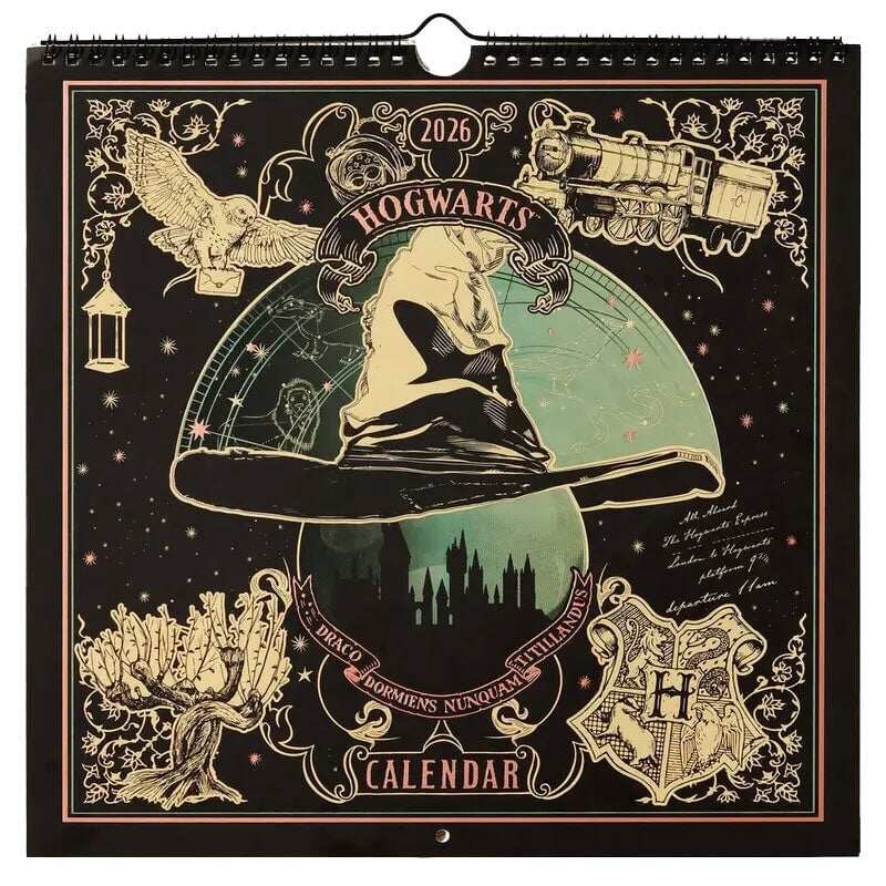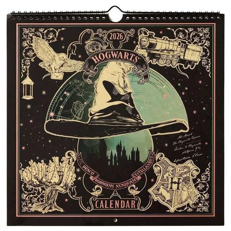 Couverture de janvier à décembre 2026, ce calendrier mural officiel Harry Potter relié par spirale apporte une année entière de moments magiques à vos murs avec des illustrations ensorcelantes et un espace de planification pratique.