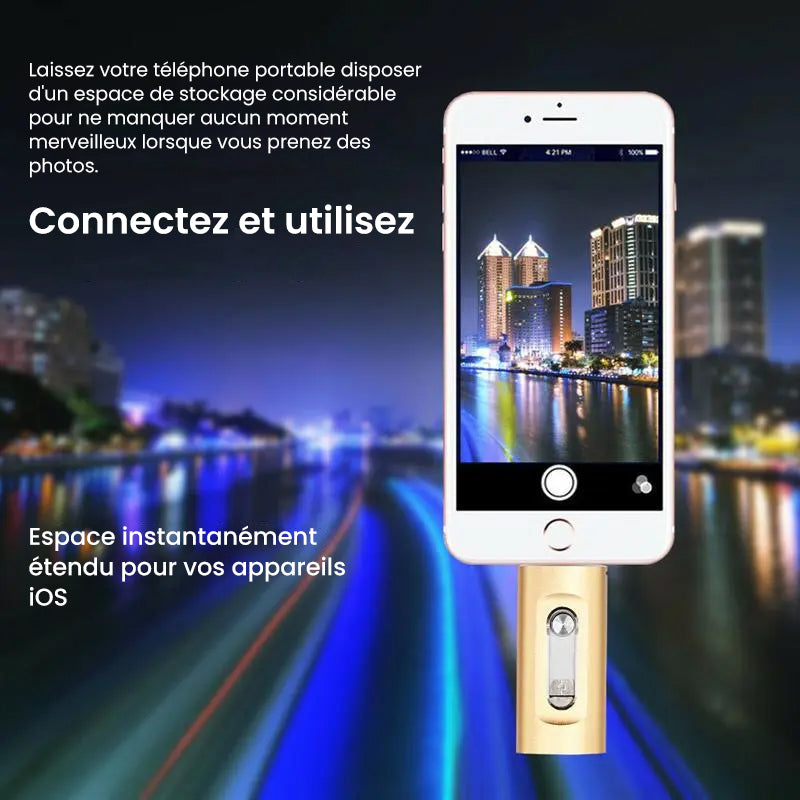 Pour les utilisateurs qui ne disposent pas d'une mémoire suffisante sur leur téléphone, cette clé USB peut offrir davantage d'espace de stockage.
