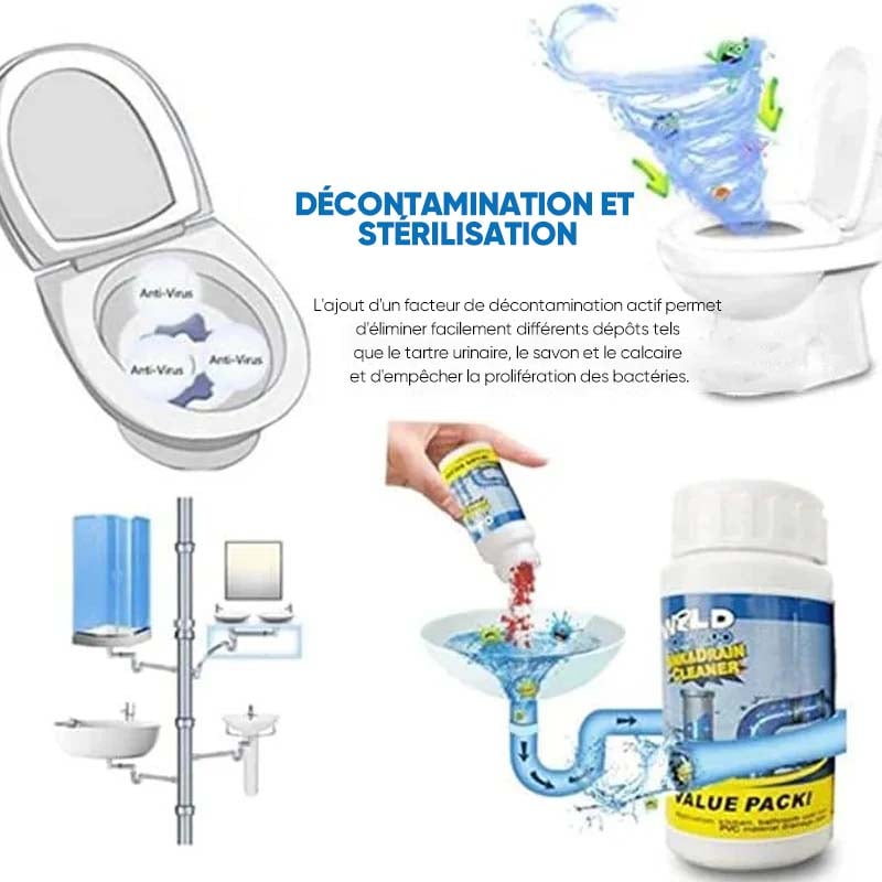Il est facile à utiliser, il suffit de verser la poudre. Il désodorise avec un parfum frais tout en tuant 99% des bactéries. Le puissant Nettoyeur d'évier et de canalisations ne s'applique pas uniquement aux toilettes, mais peut également être utilisé pour nettoyer les tuyaux de cuisine, les éviers de salle de bains et les canalisations d'eau des balcons.